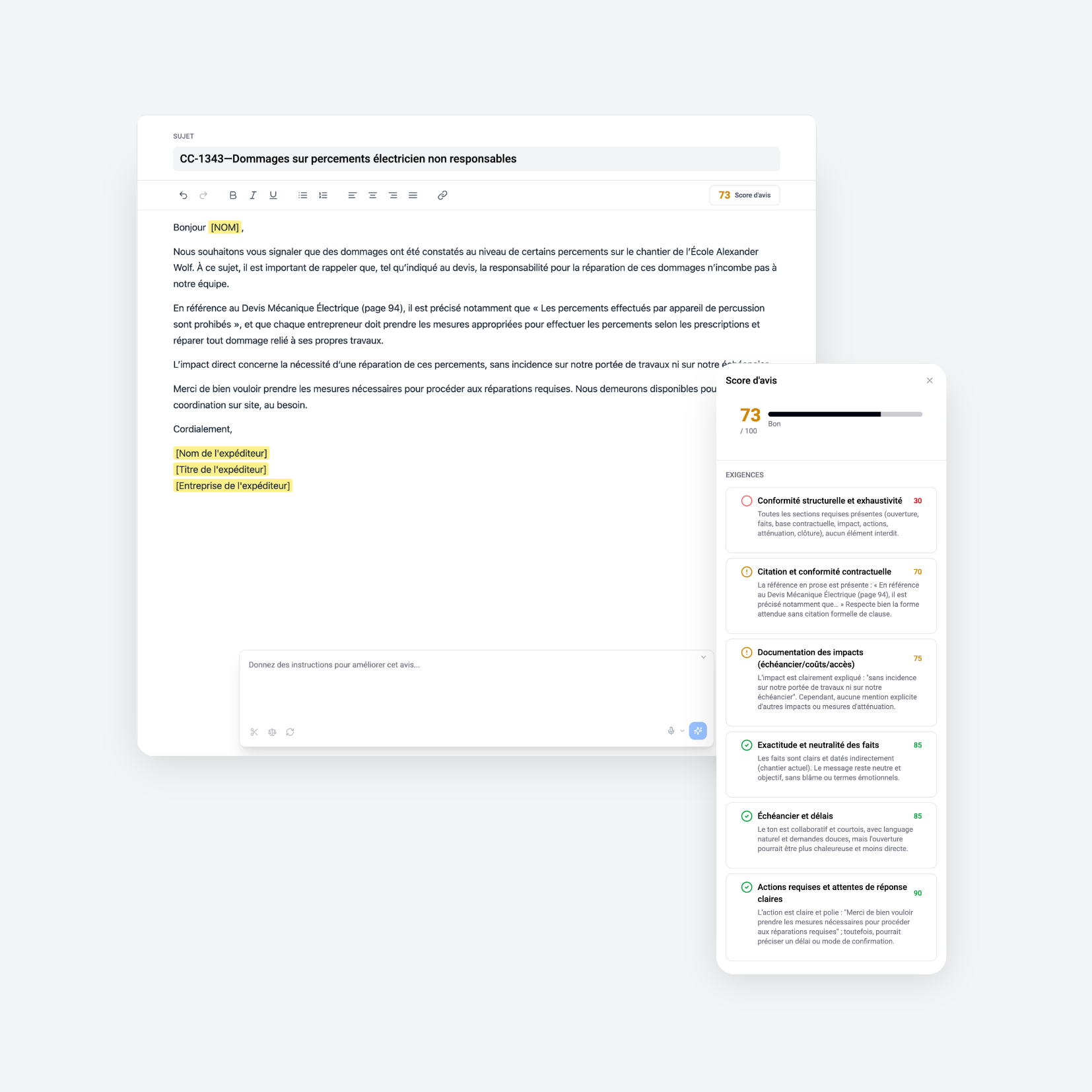 Rédigez vos avis en minutes. Fondés sur les bonnes clauses.